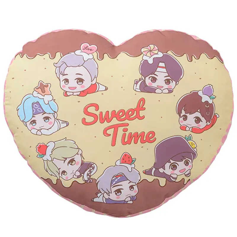This BTS TinyTAN Sweet Time Heart Cushion is double sided and will look extra sweet on your bed or sofa!