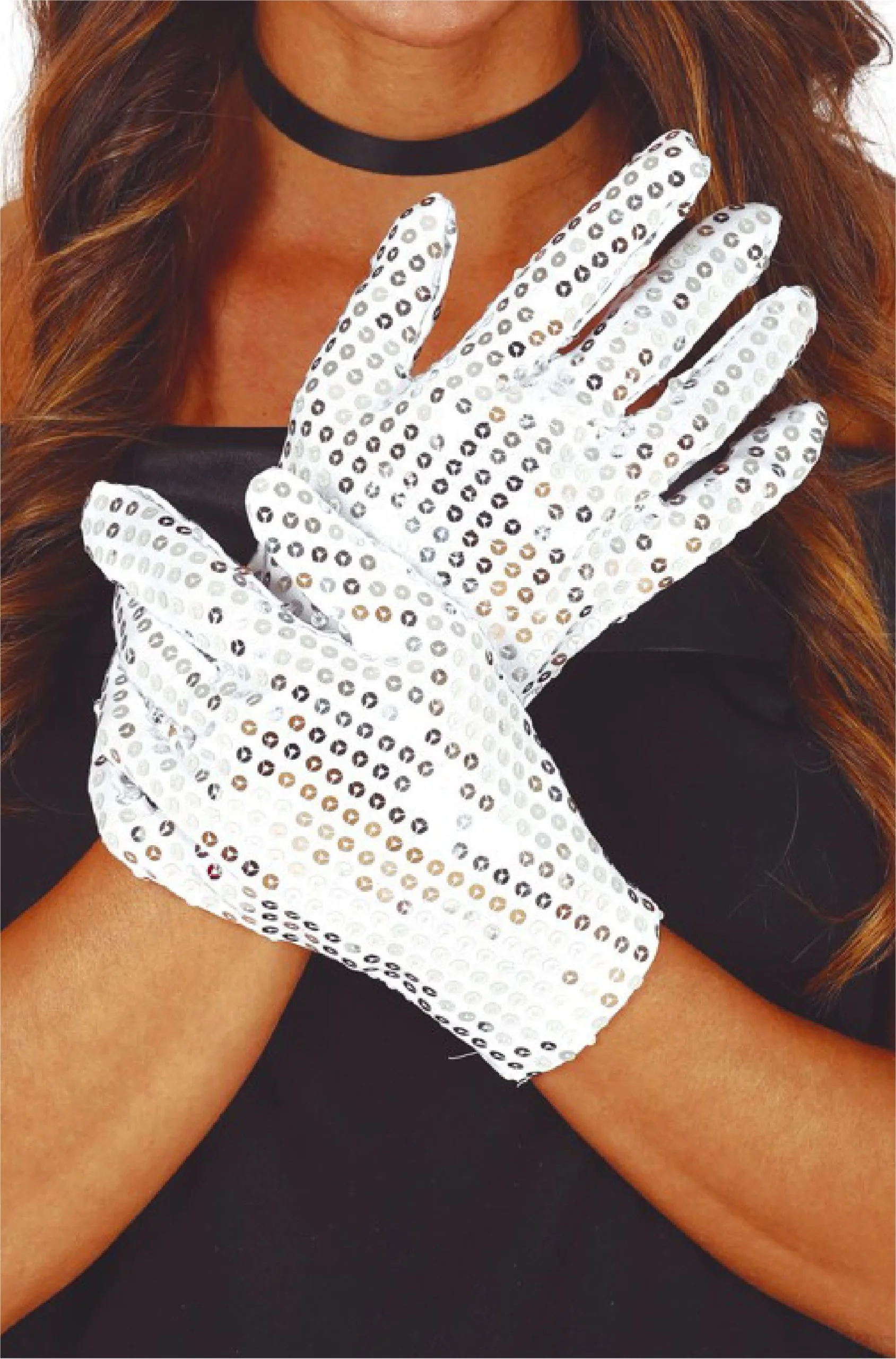 White sequin gloves