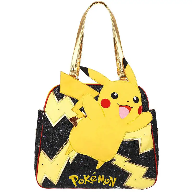 PIKACHU! Electrify your outfit with this flashing fantastic handbag! Pikachu jumps towards you surrounded by striking lightning bolts – which are complete with flashing LED lights atop a statement black glitter fabric. This staple style features a generous main compartment, top tote handles, and a detachable and adjustable shoulder strap so you can wear it any way you want! Featuring a back print of Pikachu, Bulbasaur, Squirtle, Charmander, & Butterfree.