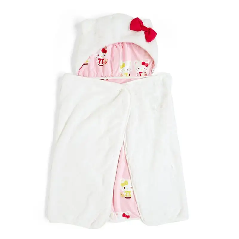 Stay relaxed with this super cute Hello Kitty & Mimmy Blanket with Hood! The blanket can be worn as a cape to make you feel warm at all times, and comes with a hood complete with Hello Kitty’s iconic ears and bow. Stay cozy and cute with Sanrio!