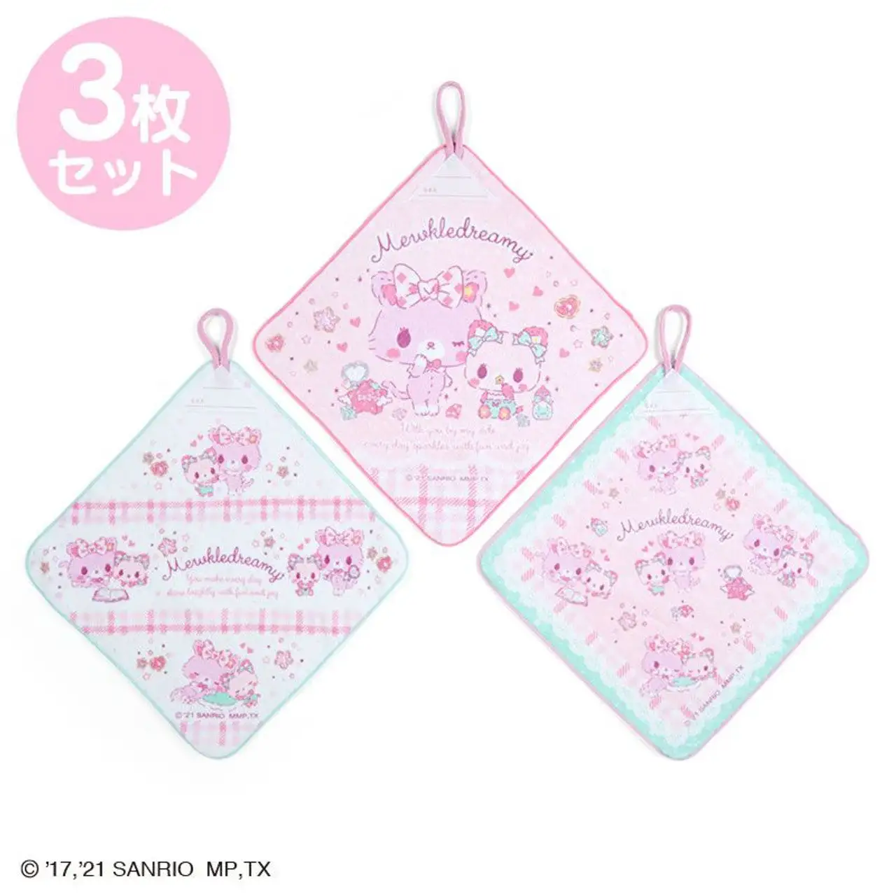 These portable towels are the perfect toiletry for any Sanrio fan! Each pack comes with 3 matching character loop towels. Each towel has a loop to hang, Â making it a super cute item to bring on a trip or vacation!