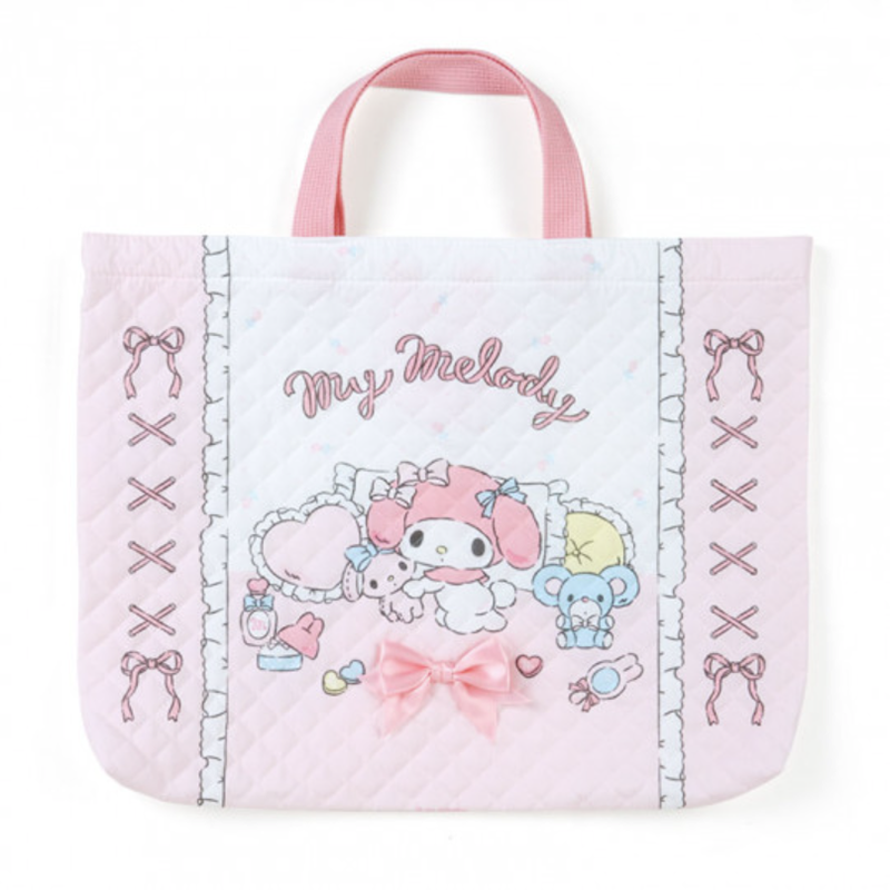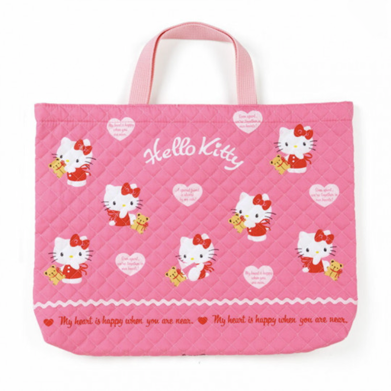 These quilted tote bags are super soft and super stylish! Each tote bag is cushioned and is the perfect way to carry your cutest items! Comes in the style of three different Sanrio characters: Hello Kitty, My Melody, and Cinnamoroll.