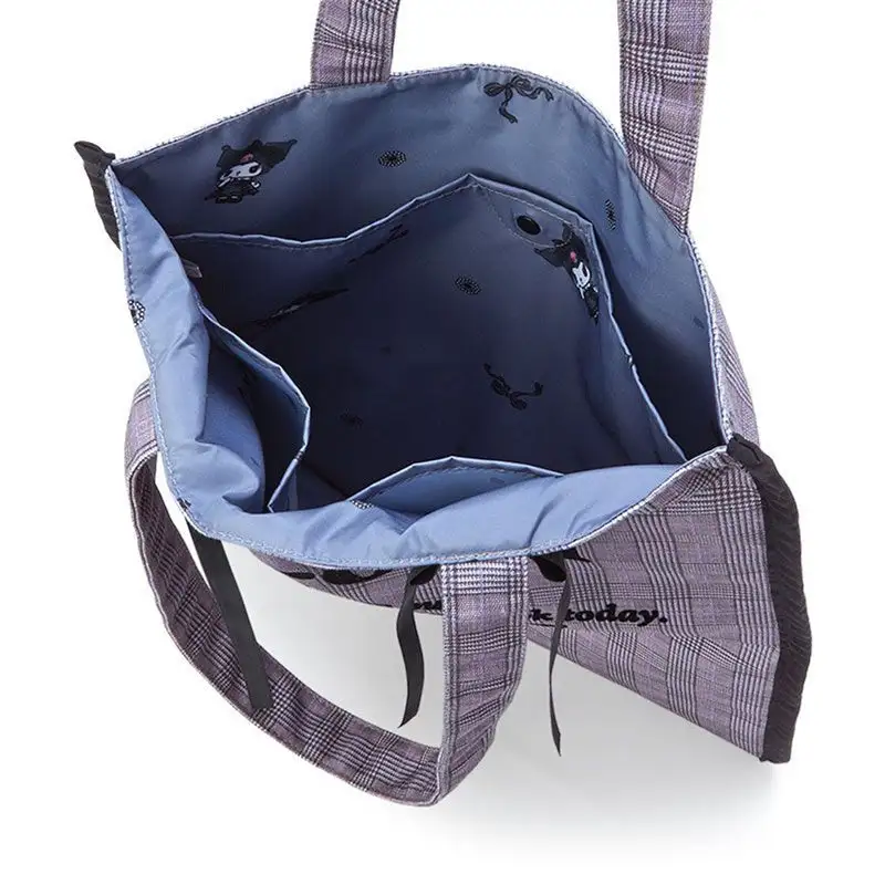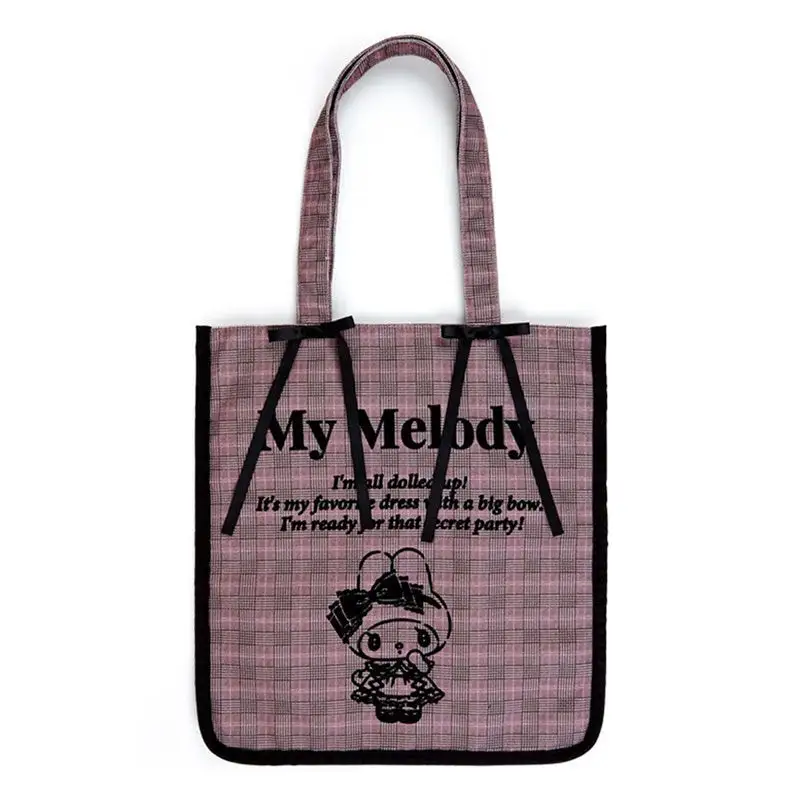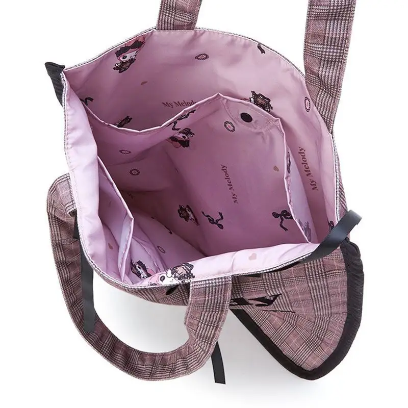 These fancy Sanrio Secret Melokuro Tote Bag comes with a plaid pattern on the outside, and a pattern of characters on the inside! Choose between two iconic Sanrio characters: My Melody or Kuromi!